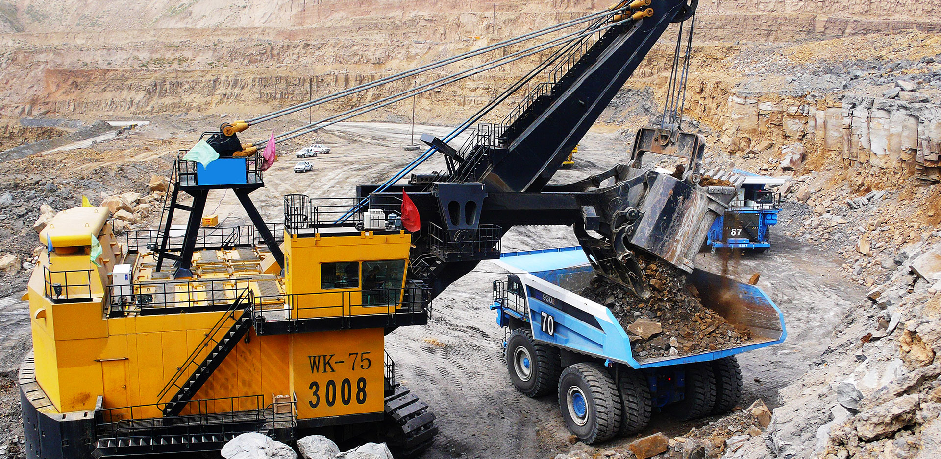 太原重工是礦山設(shè)備的專(zhuān)業(yè)化制造基地,已生產(chǎn)礦用機(jī)械挖掘機(jī)1400余臺(tái),標(biāo)準(zhǔn)斗容4m3~75m3,還提供各種液壓挖掘機(jī)、半移動(dòng)破碎站、自移式破碎站、排土機(jī)和卸料車(chē)、履帶運(yùn)輸車(chē)、帶式輸送機(jī)等成套設(shè)備,產(chǎn)品廣泛應(yīng)用于各種大型露天煤礦、鐵礦及有色金屬礦的剝離、采裝、運(yùn)輸?shù)茸鳂I(yè)。