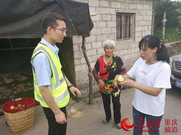 何花為搶通道路的中交職工削梨,表達(dá)感激之情。中交一公局 供圖